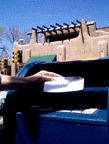 we ate blue corn enchiladas with red chile sauce